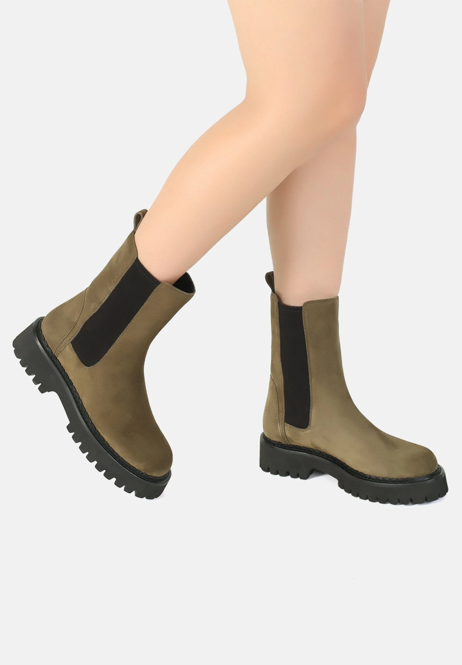 Chelsea Ekonika – Enkellaarsjes Met Plateauzool – Khaki